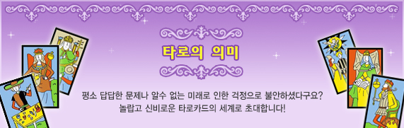 명도 울어 젊은이가, 작은 봉투를 하나 손에 넣고, 방랑의 여행에.가는 앞도 동반도 없고, 발밑에는 한마리의 강아지가. 바보로 불리고 있는 이 카드는, 모든 것이 아무것도 굳어지지 않은 상황을 상징하고 있습니다.
